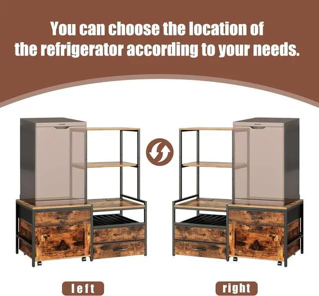 Built-in Power Outlet - this refrigerator stand features a built-in 4-AC power outlet on the right side. You can easily plug in your mini refrigerator, coffee maker, microwave, or other small appliances without the need for extra extension cords, making it a truly efficient and practical addition to your kitchen or office space.