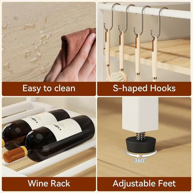 Excellent stability: Each partition has strong load-bearing capacity. In addition, the kitchen island platform is equipped with four adjustable feet to maintain balance even on uneven surfaces.