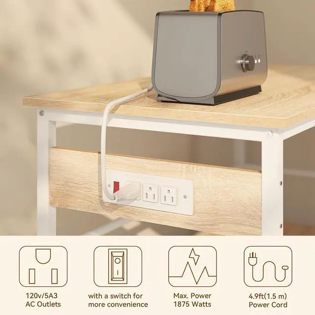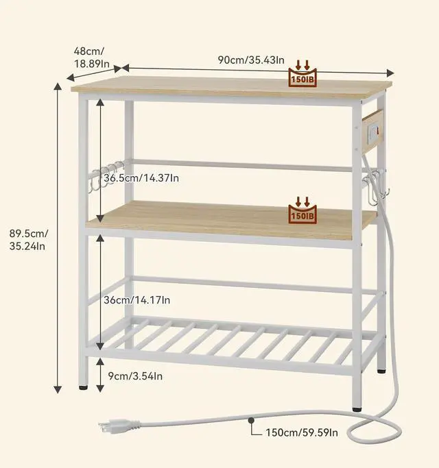 Multi functional use: can be used as a breakfast table, coffee machine table, or bread rack table, or as a small cart for outdoor party. Equipped with 8 multi-functional hooks, it can be used to hang your various kitchen utensils.
