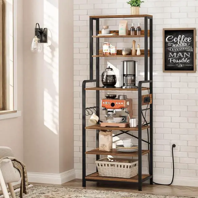 Power Outlets: This bakers racks for kitchens with storage is designed with 4 power outlets and can be installed on the left or right upon your usage habit. There is no need to worry about tangled wires when you use different appliances at the same time as well as to mind the position of the socket influencing your daily habit