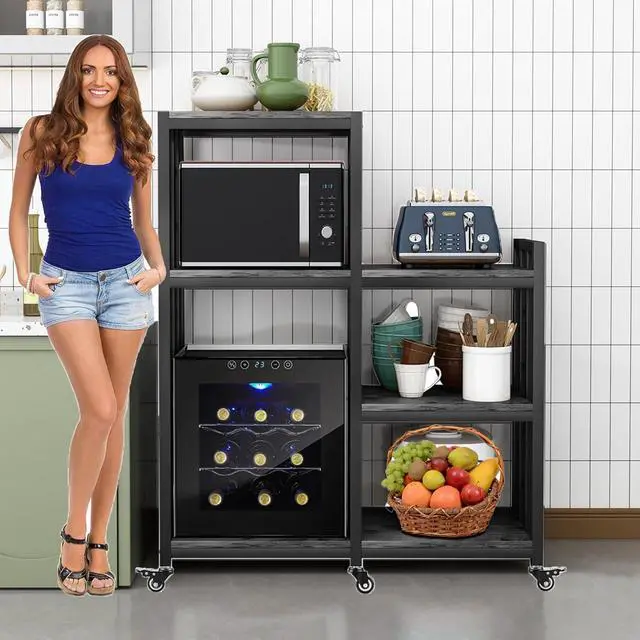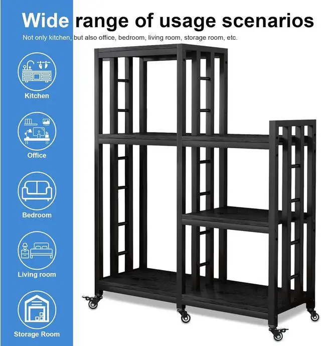 Ample storage space: With multiple shelves and compartments, this kitchen storage rack provides plenty of space to organize and store a variety of kitchen essentials such as POTS, pans, toasters, utensils, and even small appliances. Keep your kitchen clean and clutter free.