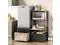 Adjustable Space - Mini Fridge Stand Compatible with Different Small Appliances. The top right side features three adjustable shelves, ideal for placing kitchen appliances such as a coffee machine or microwave. The middle shelf can be adjusted vertically within a 3.93 -inch range, making it easy to accommodate small appliances of various sizes, meeting diverse storage needs with great flexibility.