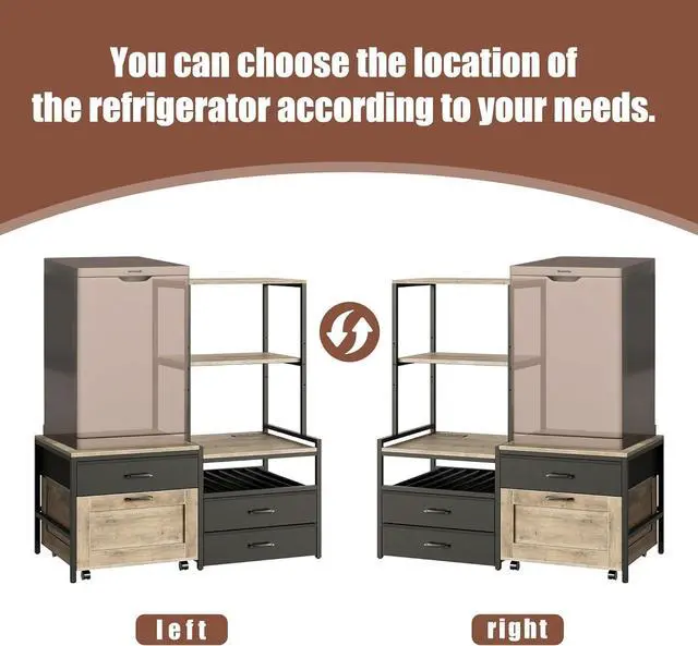 Built-in Power Outlet - this refrigerator stand features a built-in 4-AC power outlet on the right side. You can easily plug in your mini refrigerator, coffee maker, microwave, or other small appliances without the need for extra extension cords, making it a truly efficient and practical addition to your kitchen or office space.