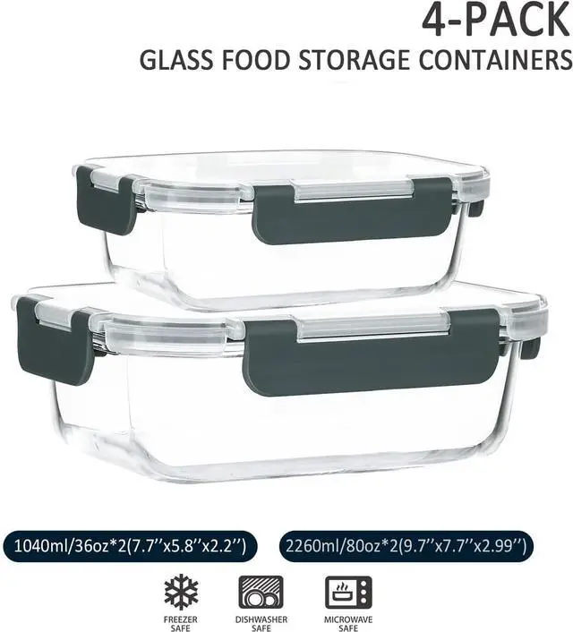 EXTRA LARGE GLASS CONTAINER SET: Includes 4 Capacity Glass Food Storage Containers In Extra-Large 80 oz (2260 ml) And Large 36 oz (1040 ml) sizes