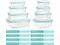 Set of 8 Glass Storage ContainersRectangle ( 35.1OZ )+( 21.6OZ )+( 12.5OZ )+ (5OZ); Square ( 27.1OZ )+( 17.6OZ )+( 10.8OZ )+( 6.8OZ ); large and small containers are versatile for different use: meal prep food, leftover, sauce, lunch to go, RV, picnic, camping.