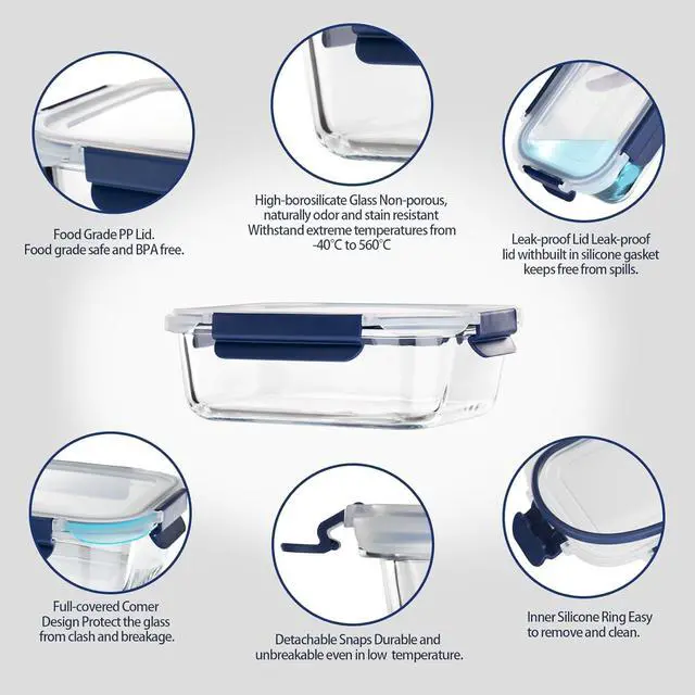 Bpa-free & Lead-free & High-borosilicate glass - The Glass Storage Containers are BPA Free, and made out of high-borosilicate glass for easy heating and durability. non-porous glass, Free of Harmful Chemicals.