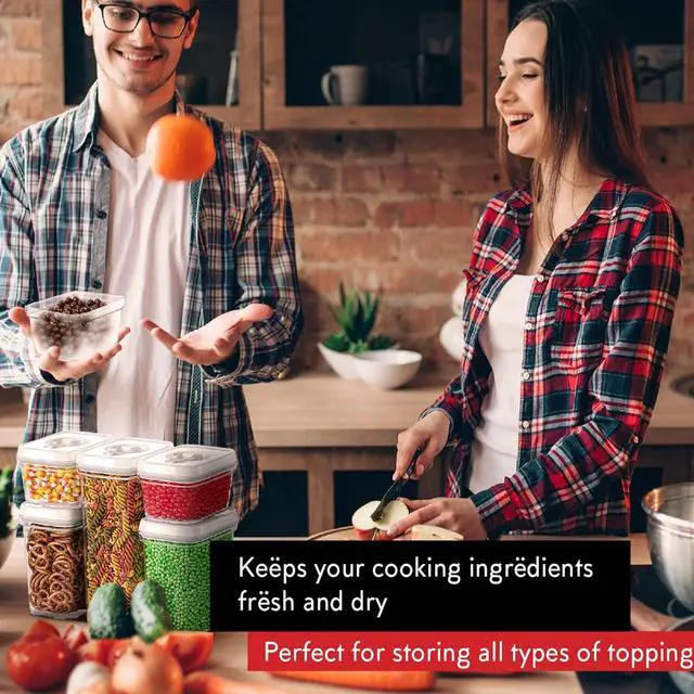 Enjoy Your Meal With Fresh Food: Keep Your Foods Fresh with Our Easy to Use Airtight Lid-Lock Mechanism. No Dealing with Flimsy Pumps. Our Pantry Organizer Food Storage Containers Create an Airtight Seal by Simply Pushing Down the Ring on The Lid. Lift the Ring Up Whenever You Want to Open the Lid. The Airtight Seal Is So Secure You Can Store Liquids Without Ever Worrying About Leaks!