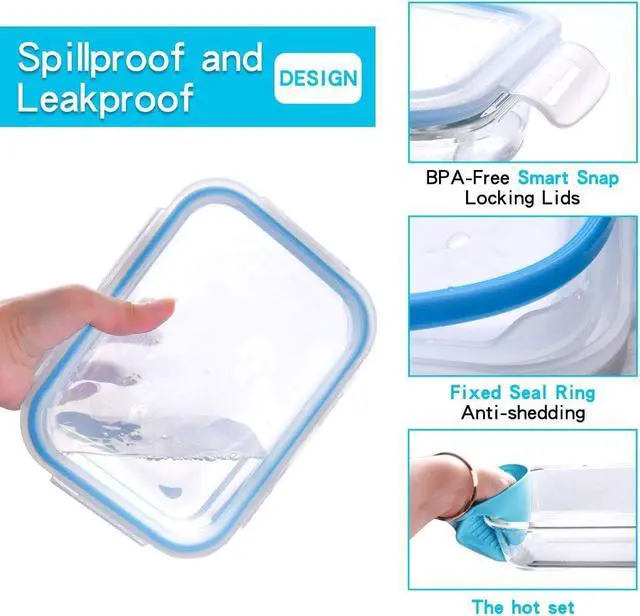 - Food storage features a no spill, vented lid with snap on locks with a multi colored silicone seals to keep different types of food separately. Stylish and Functional: Elevate your kitchen with lunch containers glass that combine practicality and elegance; glass food storage set offers a sleek design while ensuring your meals stay fresh and ready to enjoy