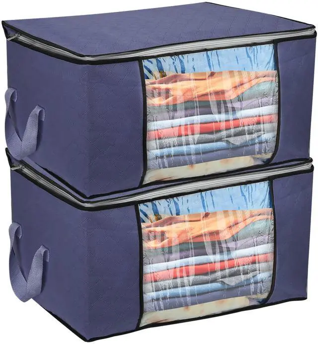 *Keep Your Home Neat with Large Capacity: The storage bag comes in a set of 2 (Blue and Grey), and thew size of each bag is 60 x 40 x 35cm / 23.6 x 15.7 x 13.8 in, about 90L. It is spacious enough for your comforters, blankets, pillows, jackets, linens, holiday decorations, toys, photos, baby clothes or other clothes.