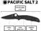 The H-2-bladed Pacific Salt 2 is available in three versions: a satin-finished blade with a black handle, a satin-finished blade with a high-visibility yellow handle, and an all-black version with a non-reflective titanium carbonitride (TiCN) blade coating and a matching black-coated lock bar and handle hardware. All offer a choice of edge configurations.