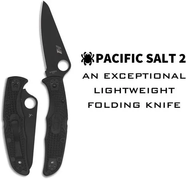 The Pacific Salt® 2 proudly offers all the key features of the iconic Endura® 4 Lightweight in an ultra-corrosion-resistant format. These include refined ergonomics, a high-traction Bi-Directional Texture pattern on the handle, a high-strength back lock mechanism, and a black-coated titanium pocket clip that supports left or right-side, tip-up or tip-down carry. Unlike the Endura 4, which uses stainless steel liners in the handle, the Pacific Salt 2s incredibly lightweight linerless handle is molded from two pieces of fiberglass-reinforced nylon (FRN) and fitted with four sets of threaded stainless steel inserts to mount its four-position clip. All other metal hardware on the Pacific Salt 2 is also machined from special marine-grade alloys and black coated for extreme corrosion resistance.