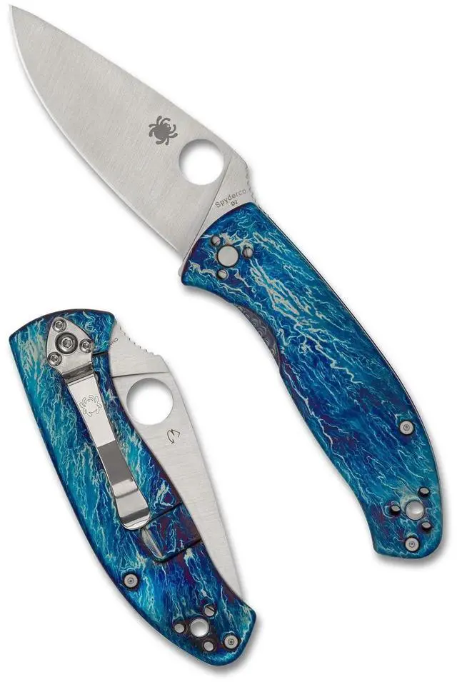 Long the flagship of Spydercos Value Folder family, the incredibly popular Tenacious® was created to provide all the signature qualities of a Spyderco CLIPIT® design in a budget-friendly format. More recently, this best-selling design has also evolved to include upscale versions showcasing high-performance materials and enhanced features. The Tenacious R.I.L. Disarray Finish elevates the design by expressing it with solid titanium handle scales, a high-strength Reeve Integral Lock (R.I.L., aka frame lock) mechanism, a D2 tool steel blade, and a stunning Disarray finish on the handle scales. This proprietary heat-anodizing process is individually applied to each solid titanium scale to produce a breathtaking one-of-a-kind color pattern. This knifes beautifully polished scales provide the structure for its sturdy R.I.L. mechanism, which is meticulously machined into the reverse-side scale and includes a stainless steel insert. The insert provides a long-wearing steel-to-steel interface for the lock and serves double duty as an overtravel stop to preserve the lock bars spring tension over time. The knifes full-flat-ground PlainEdge blade offers superior edge geometry and maximizes D2s excellent combination of edge retention and toughness. To ensure convenient carry and immediate access, the handle includes a broad-based pocket clip that can be mounted in four different positions to provide a choice of left or right-side, tip-up or tip-down carry. The Tenacious R.I.L. Disarray Finish is available in two versionsone with a satin-finished blade and brightly finished handle hardware and one with a black-oxide-coated blade and matching black-coated hardware.