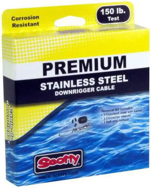 Scotty Item 1002K is Premium Stainless Steel Replacement Downrigger Cable of 150 lb. test. Comes with 1153 Terminal Kit.