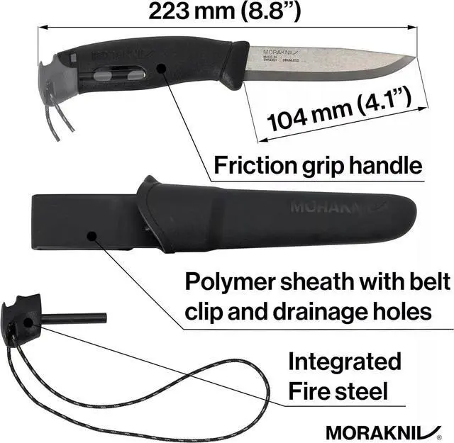 The Morakniv Companion Spark is an essential tool for any outdoor adventurer. This versatile knife features a 3.9 -inch stainless steel blade that is perfect for a wide range of tasks, from cutting rope to preparing food. The blade is also equipped with a fire starter, making it easy to start a fire in any weather condition. The knife's high friction handle ensures a secure grip, even when wet, and the included plastic sheath keeps the blade safe and secure when not in use. Whether you're camping, hiking, or just exploring the great outdoors, the Morakniv Companion Spark is a reliable and practical tool that you can count on.
