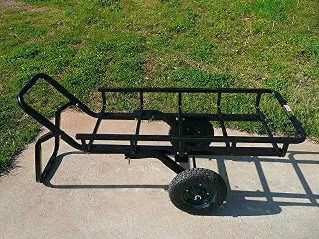 This cargo rack that transforms into a super-efficient wheeled-dolly is straightforward in design and super easy to operate. If you have your deer ready to load, the portable 2-wheeled trailer will tilt over to either side so that pulling your deer onto the carrier is easy. When you cant get your truck or ATV close to the deer, The wheel kit is easy to attach and makes loading an animal fast and easy.