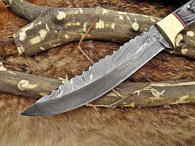 • Blade is made of Damascus steel by forging the 1095 and 15N20 high and low carbon steel. Our Damascus steel is prepared by forging over 200 layer of high carbon and low carbon steel.