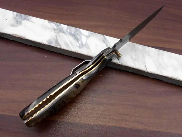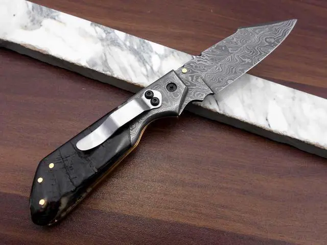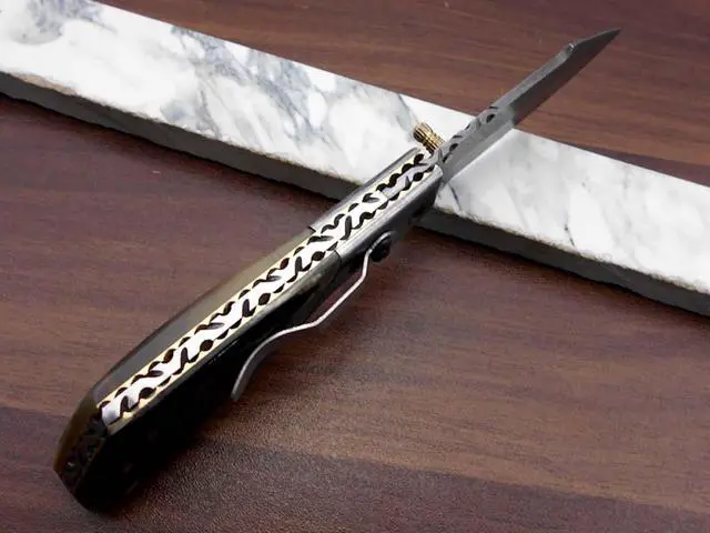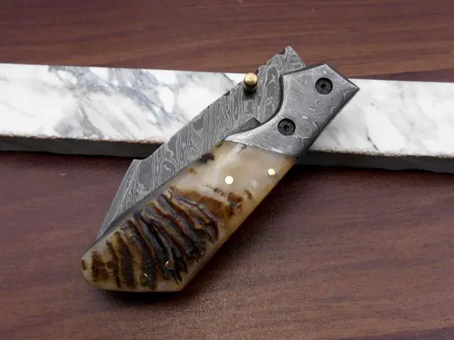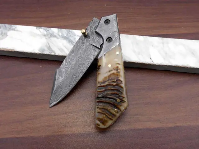 Overall 7.5 Inches compact Folding Knife 3.5 Inches long twisted pattern Damascus steel blade