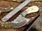 Natural Camel bone scale with Damascus Bolster 3.5" long Scale is bling with 3 Mosaic and 2 silver Pin for extra strength Overall 7" Long with 3.5" long full tang blade Full tang blades are considered stronger and durable then non full tang Approximately 5 mm Thick Rain drop pattern Damascus steel blade Up to standard compact skinning and everyday pocket knife Knife Comes with a fine quality extra thick and robust leather sheath. The sheath has belt inserting loop and can be worn on belt Our Damascus steel is prepared by forging over 465 layer of high carbon and low carbon steel.