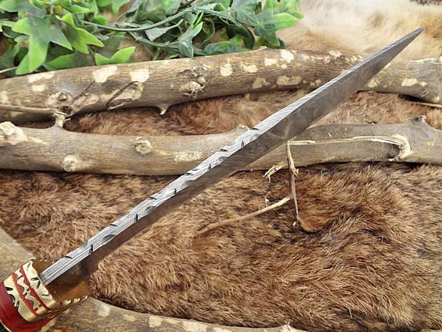 • 5 mm thick hand forged Twist Pattern Damascus steel.