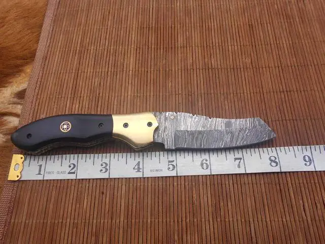 Care Damascus knife: Damascus steel as well as 1095 high carbon steel knives are different than some other common steel knives, because of its high carbon content they can be rusted if not care properly. If you have seen rust accidently then use WD40 to remove it Never store your knife for long time in leather sheath. Leather can absorb water which will rust the knife. Always clean the blade after using and apply oil or wax (please use cooking oil on Chef Knife) before you store it, for its longer life and durability.