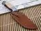 Overall 10.5" Long clip point blade skinning knife. Available in Ram horn, Camel bone and wood scale. 5.5" long hand forged rain drop pattern Damascus steel full tang blade. Approximately 5 mm Thick Twist pattern Damascus steel blade. 5" long full hand Ram horn scale is equipped with solid Pommel & Bolster. Comes with a fine quality extra thick and robust leather sheath. The sheath has belt inserting loop and can be worn on belt. Blade is made of Damascus steel by forging the 1095 and 15N20 high and low carbon steel.