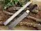 Overall 13" Long with 7.5" long full tang blade Full tang blade goes through all the handle as well in a single piece full tang blades are durable and stronger than non full tang blades Natural rose wood Scale Blind with 2 silver pins and an inserting hole Approximately 4 mm Thick Twisted pattern Damascus steel blade Up to standard chef Knife Blade is made of Damascus steel by forging the 1095 and 15N20 high and low carbon steel Blade has been given an excellent heat treatment to get it well hardened Hardness 56 to 58 HRC. Tips to