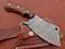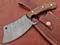 9" long hand forged Twist Pattern Damascus steel Butcher Meat cleaver, Natural walnut wood scale, Cow hide Leather sheath included Brown
