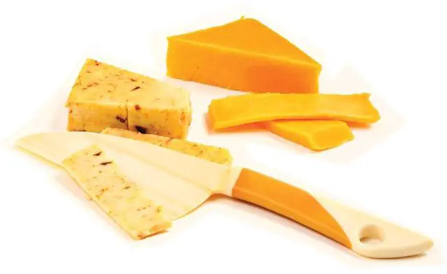 Revolutionary material and design keeps cheese on plate, not on knife. Works with soft cheeses, butter, foie gras, boiled eggs, cakes, desserts and anything that typically leaves residue on ordinary blades.