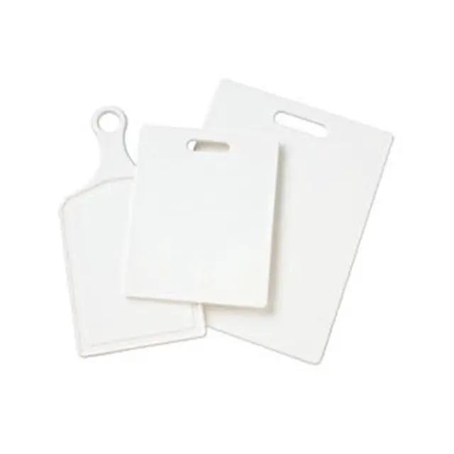 The non-porous surface will not harbor bacteria, absorb odors or dull your knives. Dishwasher safe. Set of three boards includes one each: 8" x 10", 7" x 14" and 10-1/2" x 14".