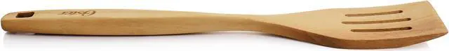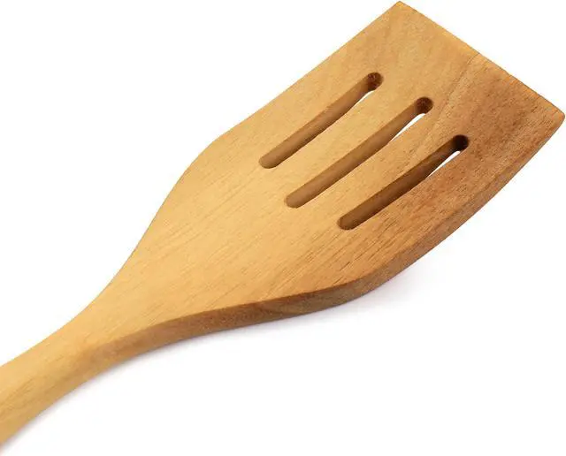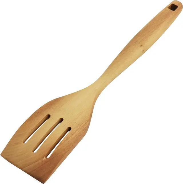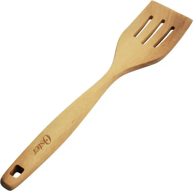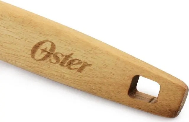 The Oster Acacia Wood slotted turner is an essential and classic utensil to have in your kitchen. The wood construction prevents scratching and makes this utensil suitable for all cooking surfaces, including nonstick and other delicate finishes. Hanging hole at handle provides storage options. Slightly curved and tapered cooking end for convenience while scooping and separating. Hand wash only.
