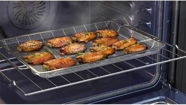Using little to no oil, you can quickly prepare your favorite fried foods right in your oven with this Stainless Steel Air Fry tray that can be used in select Slide-in and Freestanding Range models that have a built-in Air Fry setting. Enjoy fried foods and make them a little healthier by Air Frying in your oven!