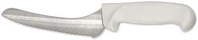 Bread Knife, Offset, Length 9 In., Blade Type Serrated, Blade Material High Carbon Steel, Polypropylene Handle, Handle Color White, NSF Certified Yes