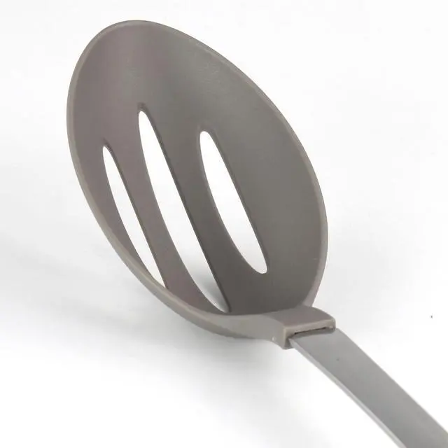 Enjoy cooking all your favorite meals with the Martha Stewart Nylon Slotted Spoon in Taupe. The slotted feature allows to pick up and draining solid foods from boiling water. The ergonomic heat resistant handle provides comfort and control while cooking. Can handle heat up to 400 degrees Fahrenheit. This Martha Stewart slotted spoon is just one of the amazing pieces you can get for your home kitchen. Complete the entire collection to truly feel right at home.