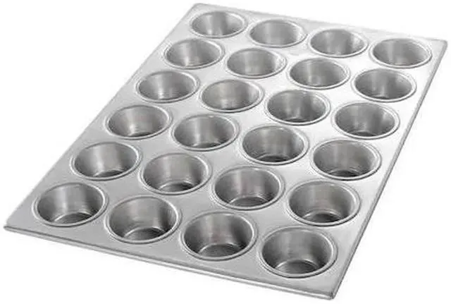 Muffin Pan, Gauge 20 ga, Material Aluminum, Dishwasher Safe No, Freezer Safe No, Oven Safe Yes, Capacity 3.8 oz, Color Silver, Overall Length 20 3/4 in, Overall Width 14 1/8 in, Overall Depth 1 3/8 in, NSF Certified No, Number of Slots 24, Pan Style Cupcake Pan. This item has been restricted from sale in the following state (s): []