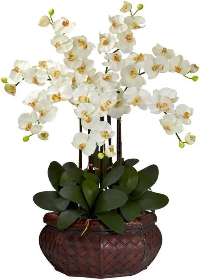 There is no escaping the distinctive presence of this Phalaenopsis Arrangement when walking into a room! Standing at an impressive 32 tall in its beautiful planter, these cheerful blooms, with their even brighter centers, cant help but put a smile on even the most serious of faces. A wonderful gift to share, or to keep one for yourself, this is one plant that will be a cant-miss!