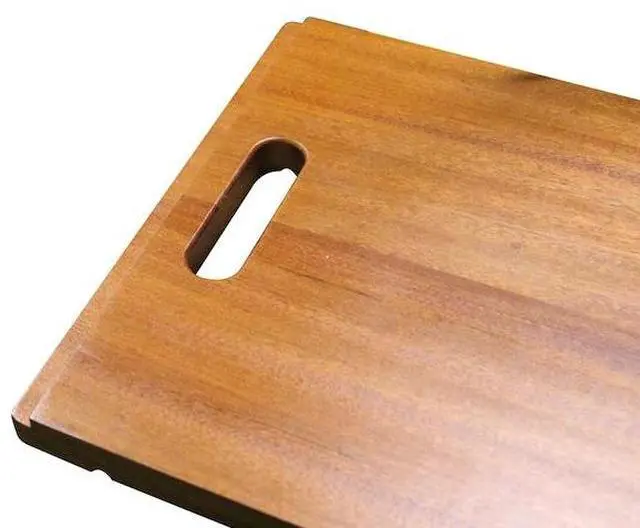 Crafted from quality Sapele hardwood, this cutting board is specifically shaped to fit on step cutting board specifically designed to fit 3 of our Pro Series Prep Station sink model, the ZR-PS-3620-16, ZR-PS-3220-16 and SR-PS-3220-16. Prized for its lustrous character and with golden brown to red range of color, this cutting board is beautiful and will sit comfortably on the interior ledges and slide across for prep tasks right over the sink. Convenient and portable, move it to where you need it most in the kitchen. Even if you don't have one of our Pro Series Prep Station sinks, you may just want one anyway!
