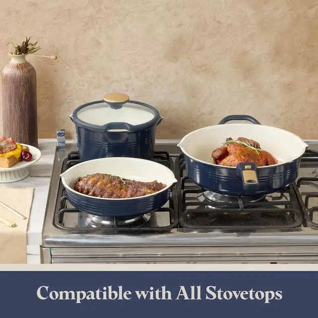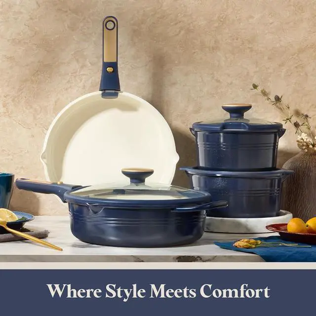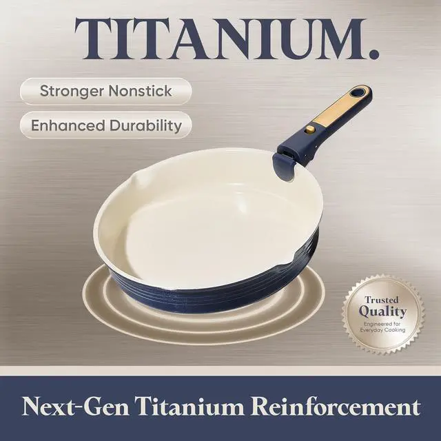 Nonstick Titanium Surface: Crafted with next-generation titanium, our kitchen cookware set is free of PFAS, PFOA, PFOS, and other harmful chemicals. Enjoy safe and easy cooking with this durable set, featuring a stronger nonstick coating that's built to last