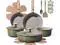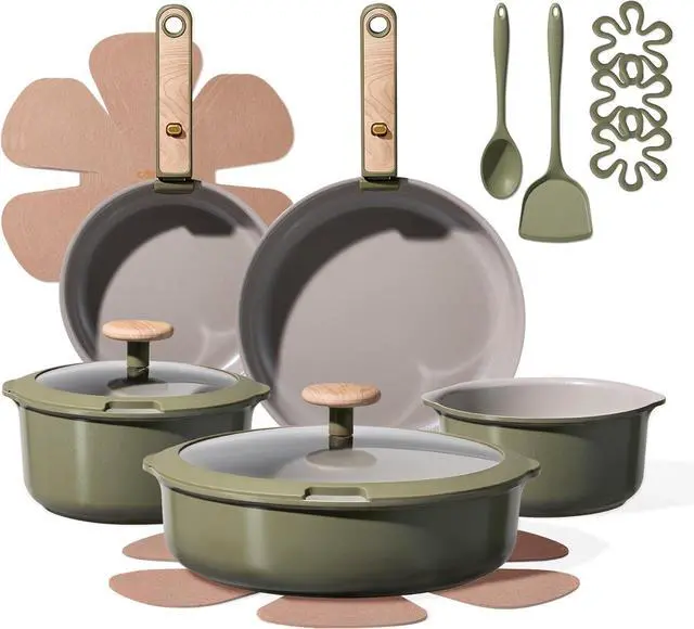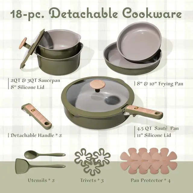 CAROTE 18 Pcs Ceramic Cookware Set Detachable Handle, Non Toxic Pots and Pans Set Non Stick, Induction Kitchen Cookware Removable Handles, Oven Safe, Stackable RV/Camping Cooking Set, Green