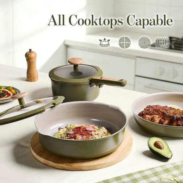 Detachable Handle for Saving SpaceWith the handle removed, pans stack neatly to free up to 70% of cabinet space. Cook on the stovetop, slide into the oven, then carry straight to the table. The induction cookware for cooking, serving, and easy storage