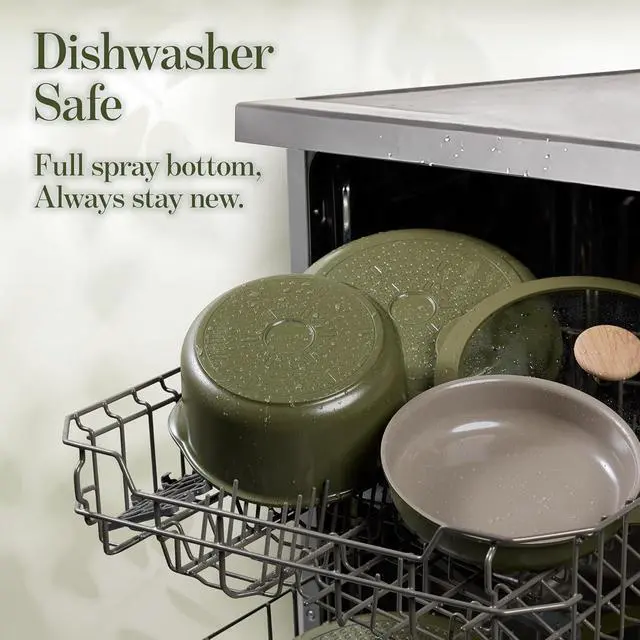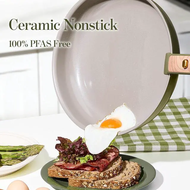 Ceramic Non-Stick CoatingWith a PFAS-free ceramic nonstick surface, eggs loosen and slide as you tilt the pan, even with little oil. Food releases smoothly, leaving less residue behind and making cleanup quicker between meals