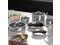 Cookware Set includes: 8-inch Frying Pan, 10-inch Frying Pan, 3.6QT Saute Pan with Tempered Glass Lid, 1.5 QT & 2 QT Saucepan with Tempered Glass Lid, 5 QT casserole pot with tempered glass lid. Premium stainless steel cooking set to look elegant in kitchen.