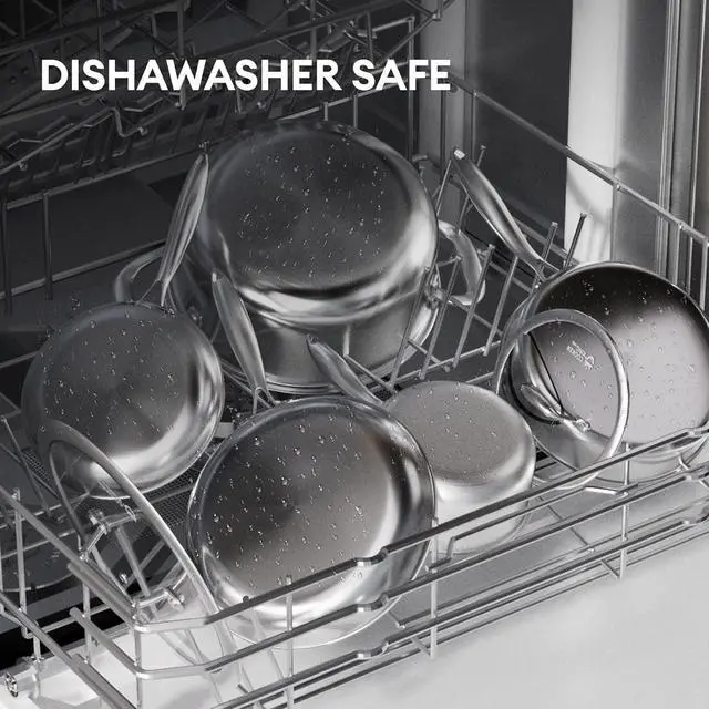 Effortless Cleaning: Discover the convenience of our dishwasher-safe stainless steel cookware set. These non stick frying pans and skillets make cleaning quick and easy.