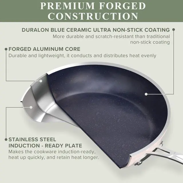 HEALTHY DURALON BLUE COATING The eco-friendly, ultra-non-stick Gen10 Duralon Blue is all-natural ceramic coating free of harmful chemicals like PFAS*, PTFE, PFOA, lead, and cadmium. It also does not emit toxic gases at higher temperatures. *Tested by TÜV Rheinland for 106 known PFAS elements and none were detected.