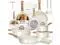 • COMPLETE SET: 22-Piece Cookware Set Includes frying pans (6.3, 8, 11), saucepans (1.9QT, 3.8QT), casseroles (2.3QT, 6QT), 10 Crape Pan, glass lids, silicone utensils, spoon rest & 7 pan protectors.