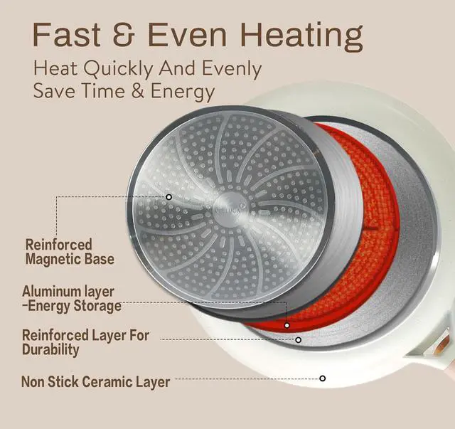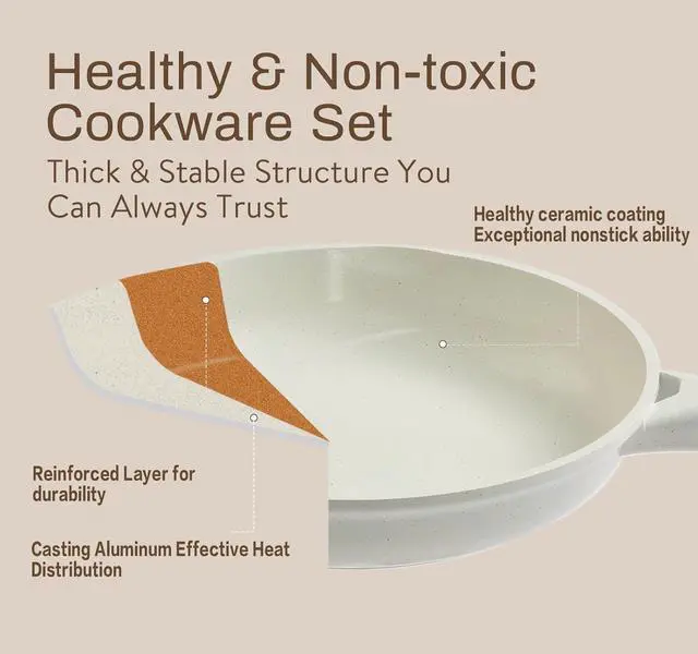 • 100% NON-TOXIC& HEALTH SAFE: Made with a PFOS, PFOA, and Teflon-free ceramic coating for a safer cooking experience.