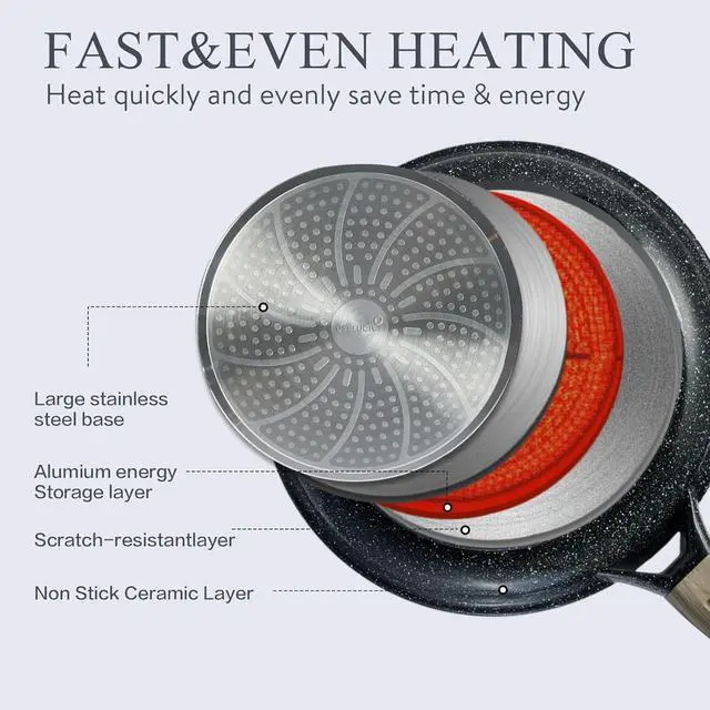 • COMPATIBILITY &INDUCTION READY:Designed for all stovetops, including induction, gas, and electric, with even heat distribution.