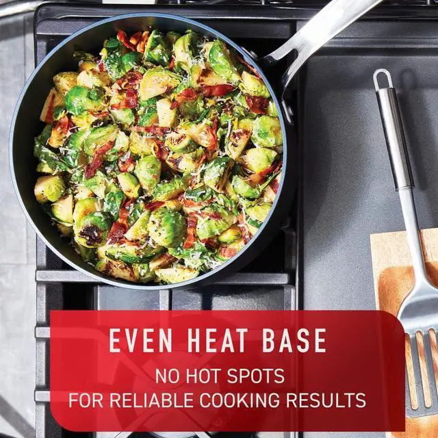 Heat mastery system: T fal's heat mastery system is a three ingredient recipe for perfectly delicious cooking results every time; Superior and longer lasting non stick coating, an anti warping, even heat base and patented thermo spot technology