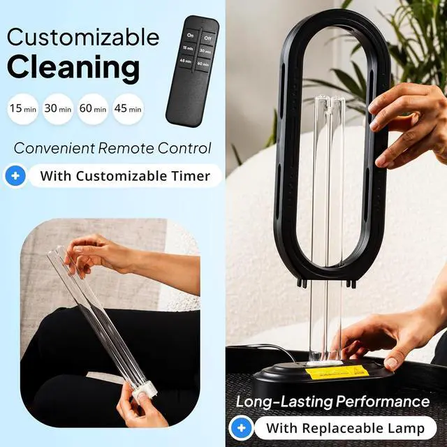 [Multiple Time Option] Halo UVC light has 4 time modes: 15 minutes, 30 minutes, 45 minute and 60 minutes, which can be easily controlled by the remote control.