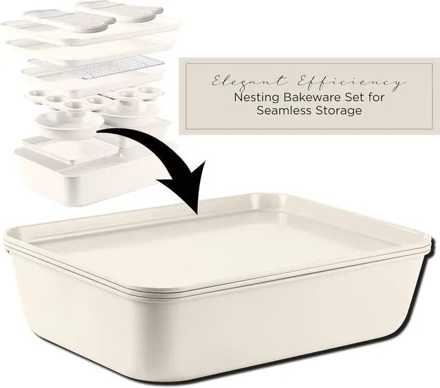 Space-Saving Nesting Design Designed to maximize kitchen storage, all pieces conveniently nest together for easy organization, making them perfect for small kitchens or clutter-free countertops.