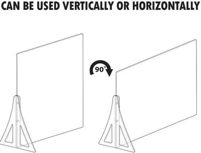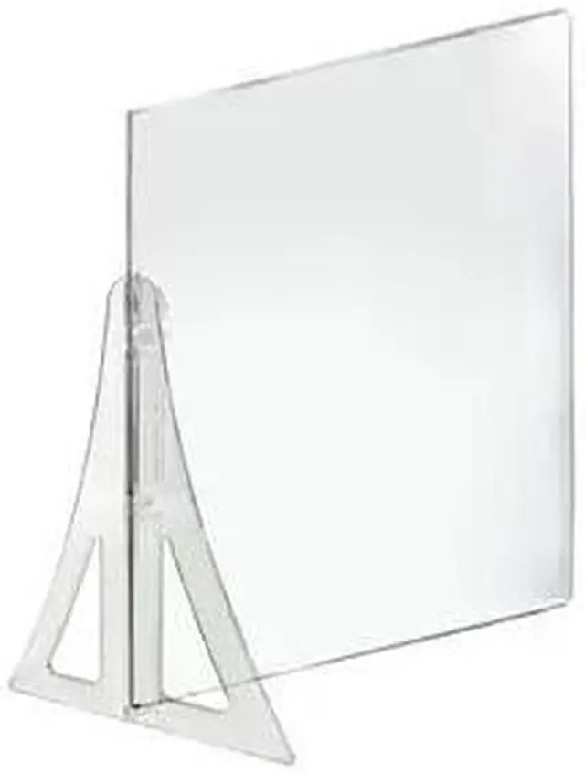 This NEW CLEAR Acrylic Single Leg Partition Shield with Triangle Support Stand and Rounded Corners provides protection against sneezes, coughs and germs between employees and customers. You can use this shield horizontally or vertically. Ideal for schools, restaurants, offices, libraries, stores, banks, airports, and reception desks. Or use anywhere there is a need to limit contact with third parties. Ships Flat. Sits on counter, table or desk. To assemble, just snap the Support Leg/Stand into place, no tools required.